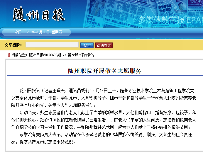 上一条:随州日报:随州职院学生获评湖北省大学生自强之星