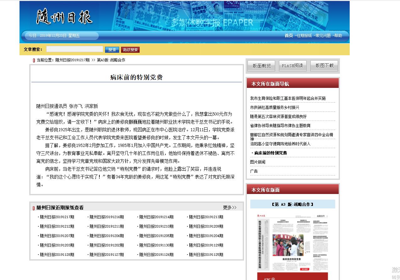 “感谢党!感谢学院党委领导的关怀!我衣食无忧,现在我也不能为党做些什么了,我想拿出500元作为党费交给组织。请一定收下!”病床上的姜修良老师拉着老干总支书记的手说。