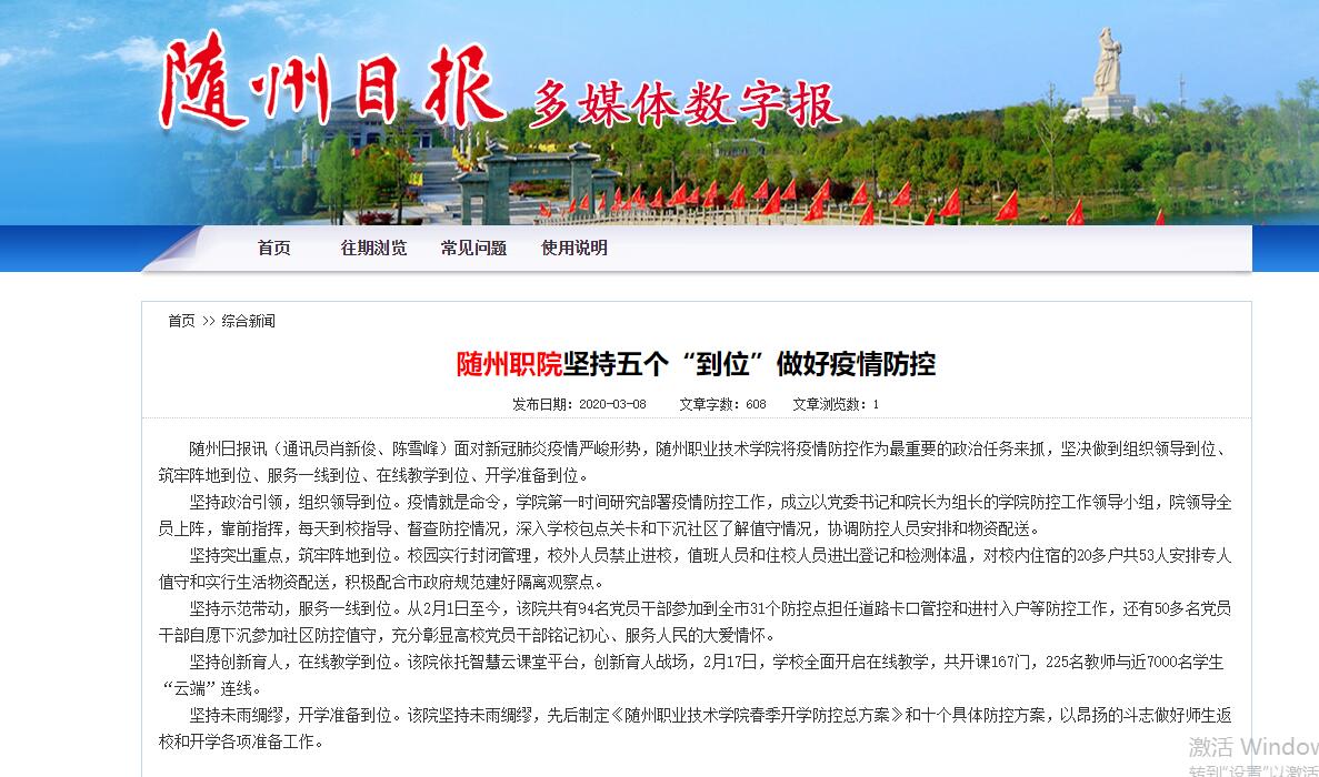 上一条:随州日报:随州职院毕业生向母校捐赠防疫物资