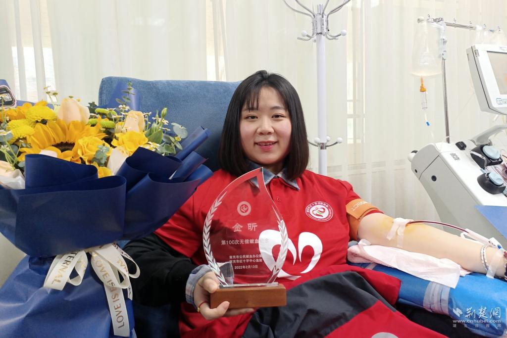荆楚网(湖北日报网)2022年03月14日讯(记者许文秀 通讯员肖新俊 罗亚男 刘景玉)从18岁开始献血,4年内共计献血100次,累计200个治疗剂量合40000毫升,获得2018-2019全国无偿献血奉献奖金奖……现就读于bat365中文官方网站18级医学检验专业的22岁女孩金昕,被四川南充市中心血站称为“献血大王”。