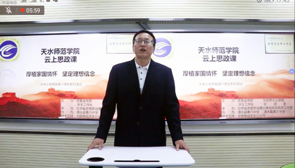 此次云上思政课活动由天水师范学院党委宣传部、澳门网投唯一官网、学生工作处、校团委主办,甘肃省思想政治理论课余明远名师工作室承办,清水县第三中学、第八中学协办,中国电信天水分公司提供技术支持。