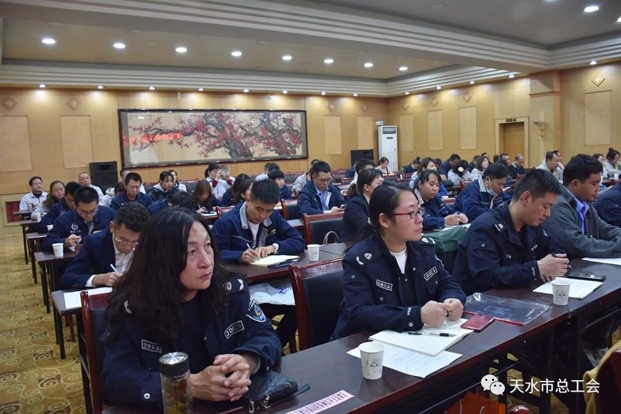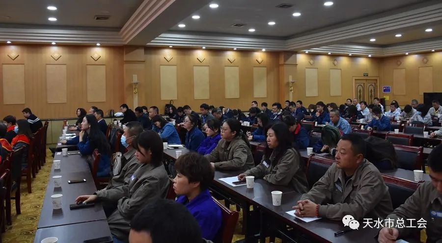 市总工会党组成员、副主席张虎琴主持报告会,市总工会党组成员、经审会主任何付忠,党组成员、副主席衡俊强,部分企业工会主席,一线职工,驻秦州区部分劳模、秦州工匠共120余人参加宣讲报告会。