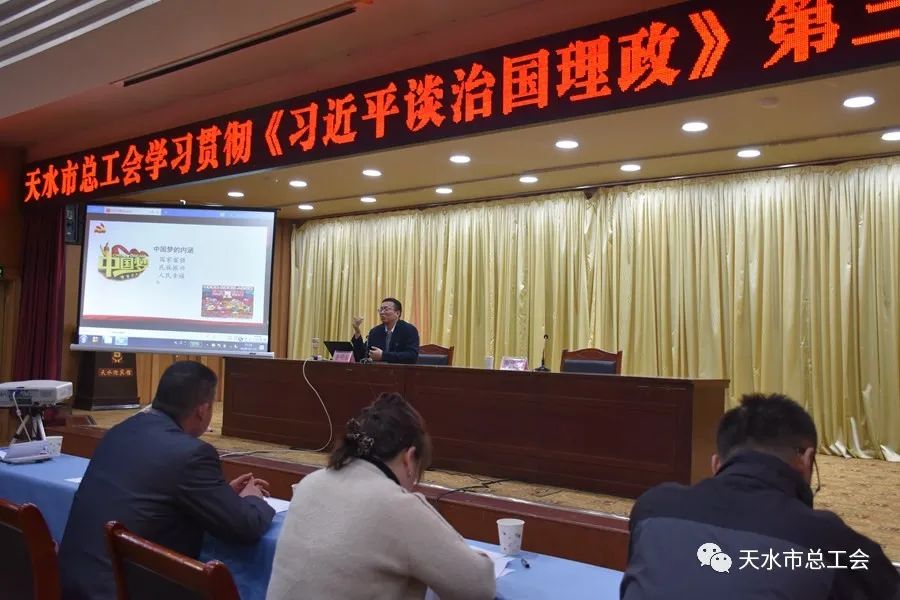 为深入学习贯彻习近平新时代中国特色社会主义思想,推动全市各级工会掀起学习《习近平谈治国理政》第三卷的热潮,引导干部职工全面系统学、深入思考学、联系实际学,系统掌握贯穿其中的马克思主义立场观点方法,统一思想,凝聚力量,10月22日,天水市总工会组织开展《习近平谈治国理政》第三卷宣讲活动。