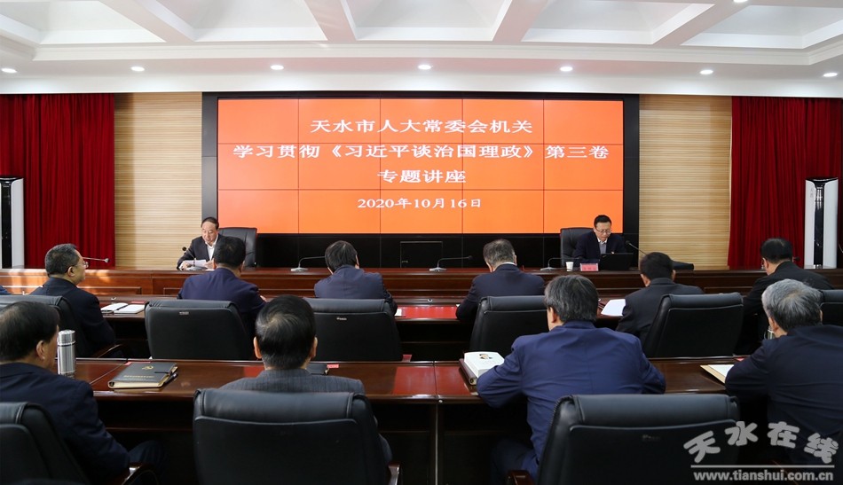 10月16日,天水市人大常委会机关举办学习贯彻《习近平谈治国理政》第三卷专题讲座,邀请天水师范学院澳门网投唯一官网副院长、市委讲师团成员余明远教授作《习近平以人民为中心发展观的理论来源与核心要义》的专题辅导报告。