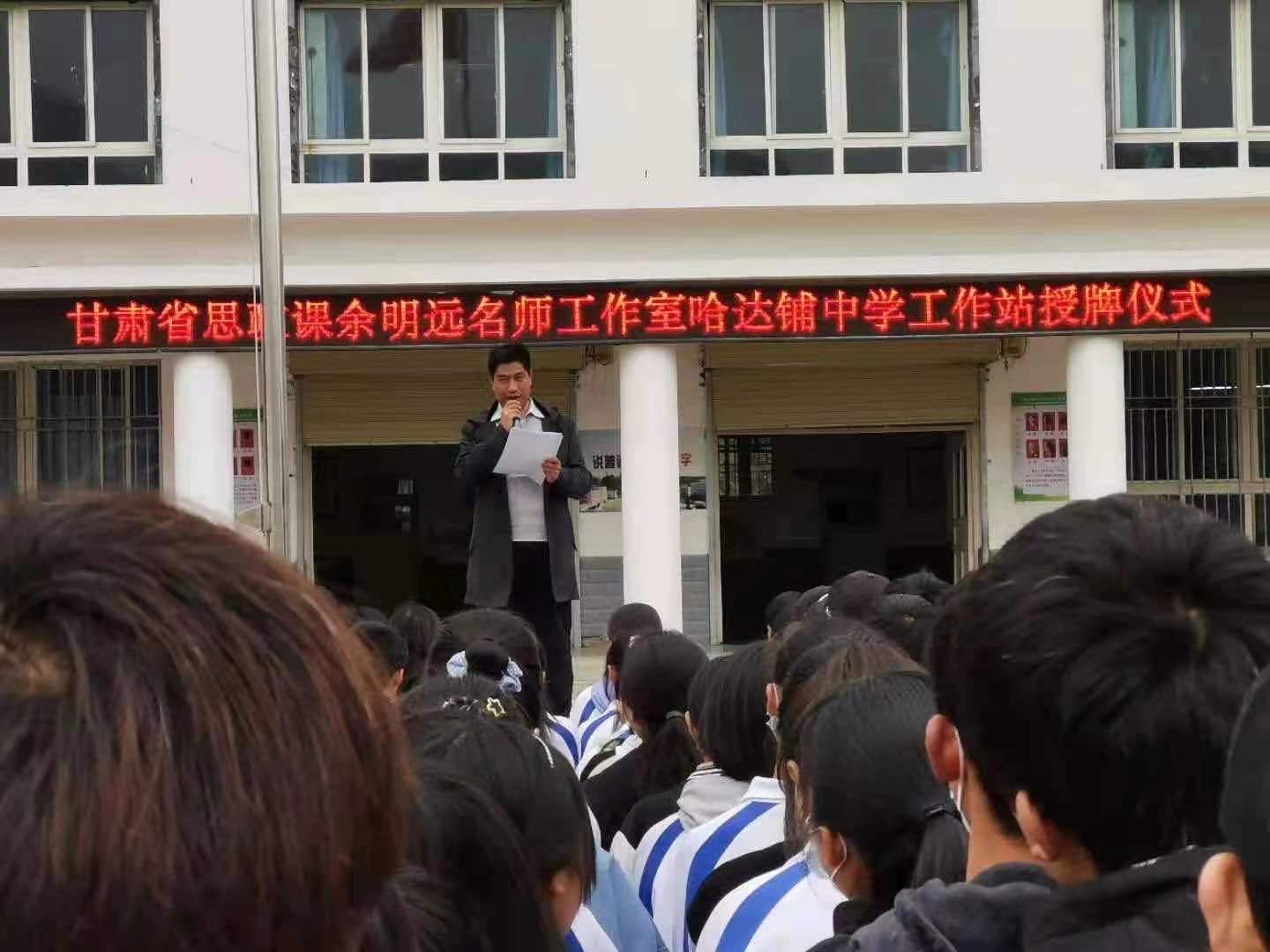 2021年4月19日,甘肃省思想政治理论课余明远名师工作室哈达铺中学工作站授牌成立,双方将就传承红色基因活动进行深度合作。