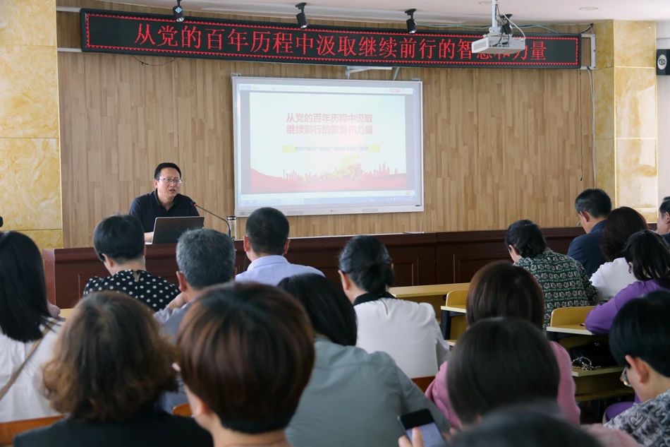 在礼县实验小学,天水师范学院澳门网投唯一官网余明远教授,面向礼县实验小学思政课专兼职教师以及全体党员,做了题为“从党的百年历程中汲取继续前行的智慧和力量”的学术报告。报告以党的理论探索史和非凡奋斗史为逻辑体系,阐释开展党史学习教育的重大意义、党史学习的重点内容、开展党史学习教育的工作要求,着重针对小学思政课教师的困惑和困难,剖析了根据小学生思想实际创新性教学,引导思政课教师在党史学习教育中明理、增信、崇德、力行,倡导其他教师充分挖掘和运用课程思政资源,构建思政课程与课程思政同向同行、同频共振的良好格局。