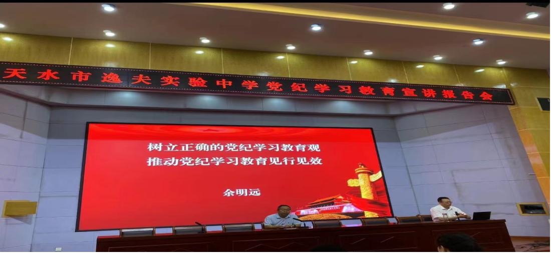 7月9日上午,甘肃省思想政治理论课名师工作室主持人余明远教授应邀在天水市逸夫实验中学作党纪学习教育宣讲,天水市逸夫实验中学党委书记白永强主持,天水市逸夫实验中学全体党员教师参加。