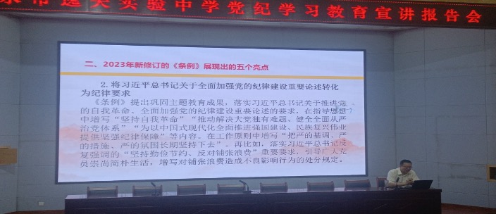名师工作室主持人在天水市逸夫实验中学作党纪学习教育宣讲